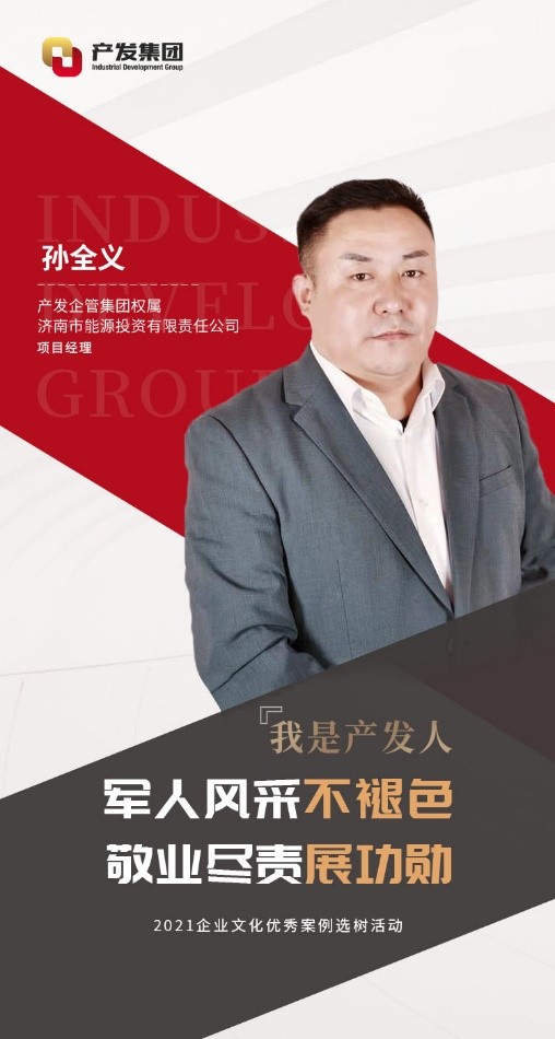 孙全义,现任英国上市公司官网365企管集团权属济南市能源投资有限责任公司(以下简称“能投公司”)项目经理。2001年参军,在部队期间刻苦训练,听党指挥,服从命令。2003年他从部队光荣退役,随后加入能投公司。期间曾借调至济南市发改委帮助工作,现负责能投公司的资产管理工作。
