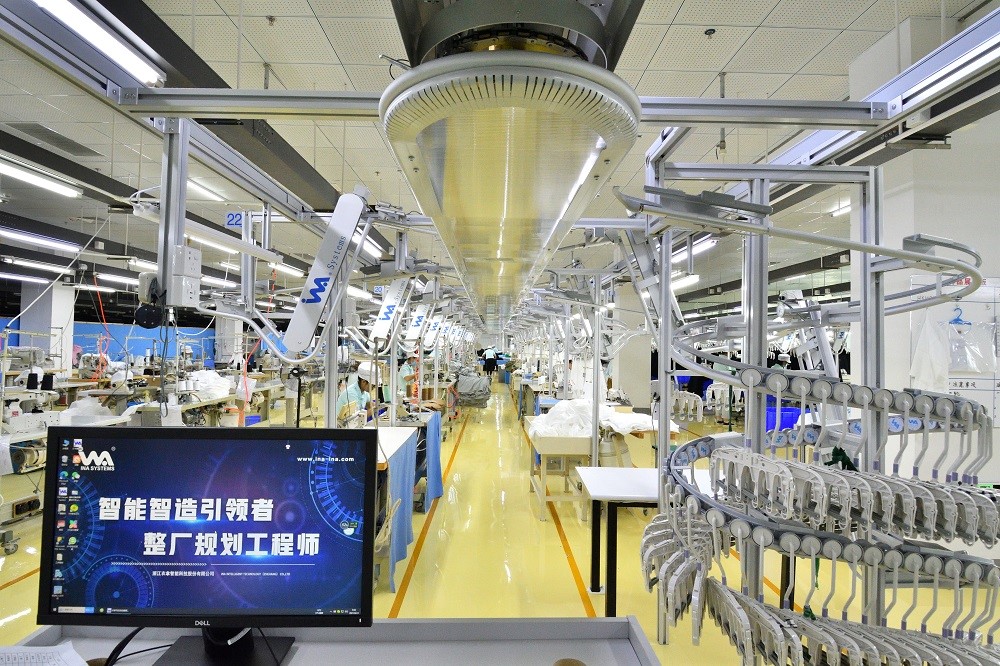 除了面料染色的智能化改造,围绕服装的设计、研发、生产,元首集团也正在加快变革,通过探索和引进自动化缝制单元、智能吊挂系统、柔性整烫系统、自动立体仓储和物流配送系统,建立生产流程的MES系统管理,提高生产效率。