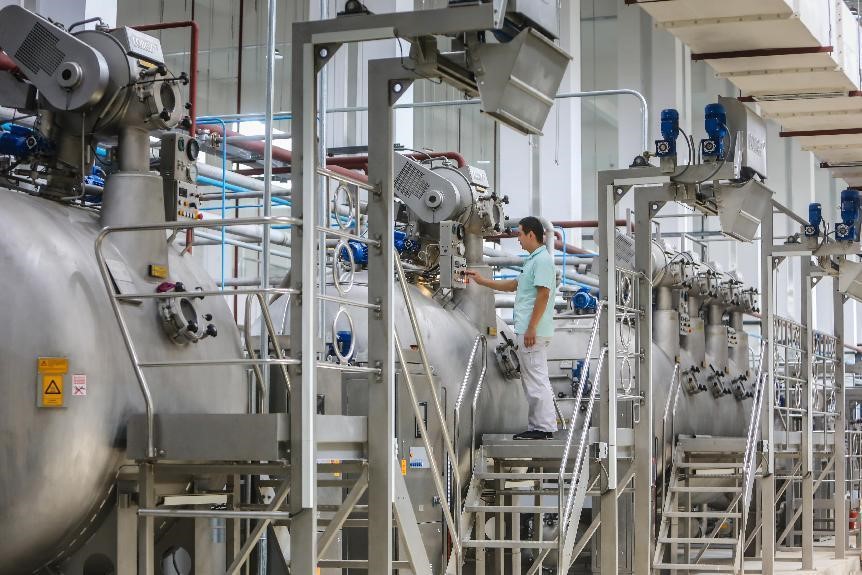 在元首集团针织服装产业园,引人注目的不仅是产业变革和调整,更有智能化升级后的质量提升。其中,面料印染作为服装生产研发的关键环节,更能体现出企业科技创新实力和绿色发展水平,也是激活新旧动能转换的“主引擎”。