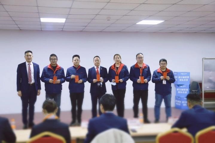 公司创始人兼总裁顾永德(左1)为2022年度专利奖获得代表颁发荣誉奖金及合影