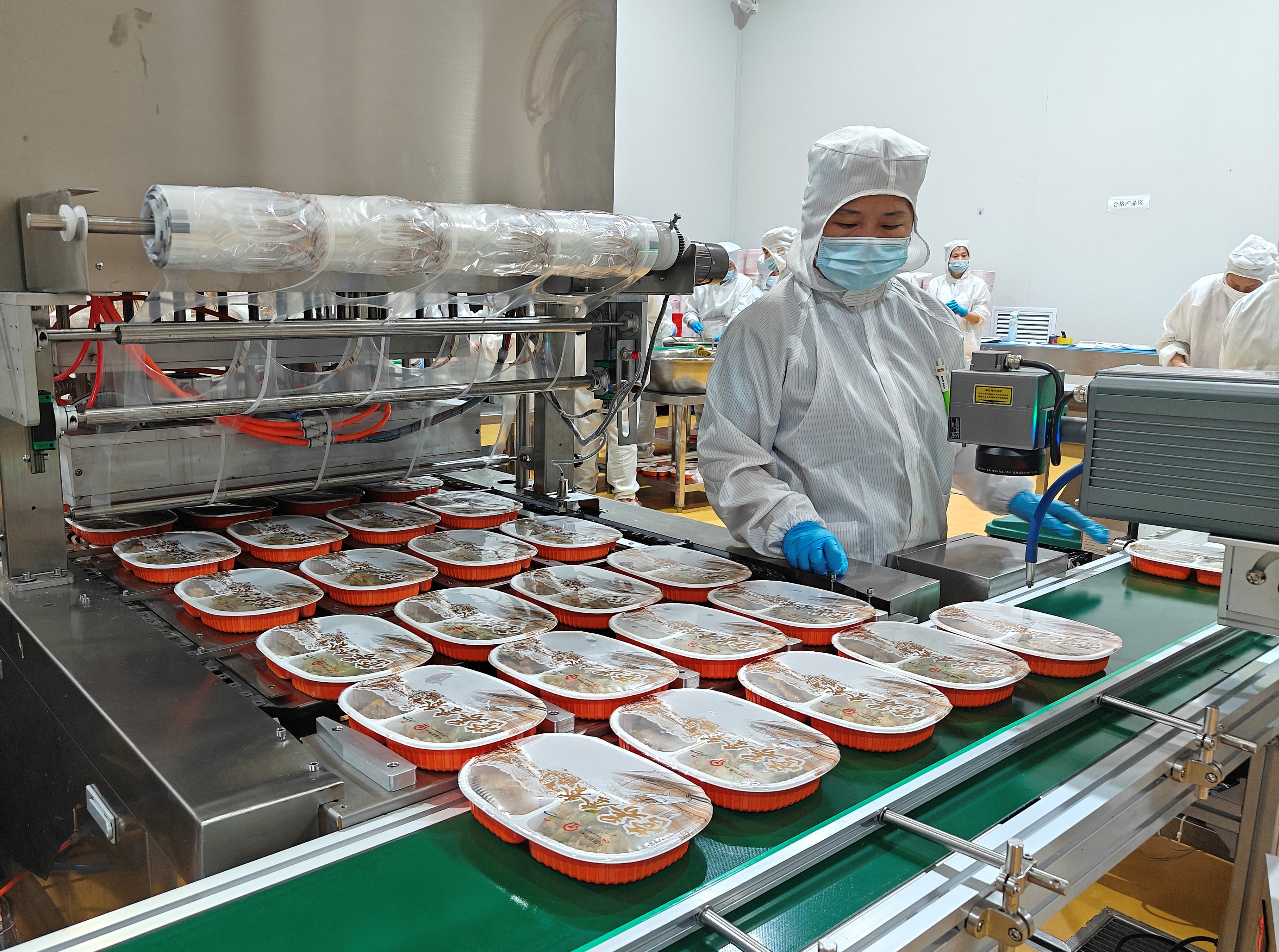 目前,金德利冷链配餐生产线已实现全程自动化无缝衔接。从烹饪、检测、分装,到覆膜、赋码、贴标,再到冷冻保鲜和智能装箱,整套流程贯穿智能化与标准化理念。每日超过4000份高品质冷链餐食通过高速列车送达旅客手中,以实际行动践行“国企餐饮 安全优质”的品牌承诺。