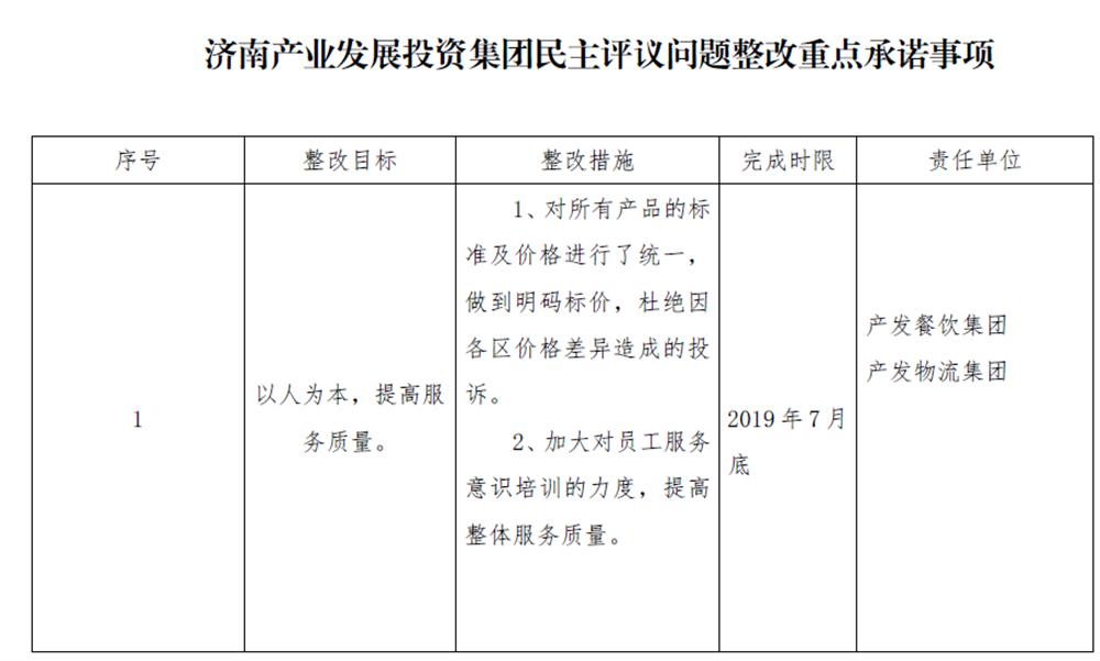 济南产业发展投资集团民主评议问题整改重点承诺事项